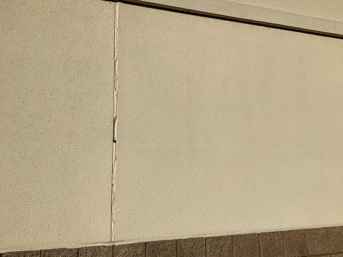 The stucco siding on the building had cracks, paint was faded and the sign removal had left holes in the substrate that were visible from the ground.